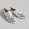 グリッターのトゥがスタイリッシュなレースアップのスニーカー。普段履きに最適な一足です。